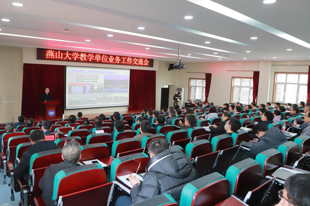 赵丁选充分肯定了各教学单位一年来所取得的工作成绩,高度评价了举办本次教学单位业务经验交流会的重要意义。他指出,学院是一所大学综合实力和办学层次的缩影,学院的管理水平、发展状况很大程度上影响着学校的未来发展。当前,距离下一轮国家“双一流”建设高校遴选的时间已不足两年,及时总结经验、科学谋划未来尤为重要。他强调,谋划好、落实好2024年各项工作,一要将本单位工作与党和国家重大战略需求紧密结合、与服务地方经济社会发展紧密结合、与学校事业发展全局紧密结合,要在发展新质生产力、推进京津冀协同、服务河北12大主导产业和107个县域特色产业等方面谋划工作的着力点、切入点、闪光点,以“为”争“位”,真正把论文写在祖国大地上,把科研成果转化为社会生产力。二要统筹做好常规工作和特色创新工作,切实把上级工作要求和学校各项年度重点任务执行到位、落实到位。要坚持目标导向,通过产出标志性成果,提升学校在服务党和国家重大战略中的显示度和影响力。三要紧盯教学、科研等关键核心任务,培育好“名师、名课、名教材”,组建好“大人才、大梯队、大平台”,为申报国家级教学科研奖励积蓄力量。四要进一步强化服务意识,各职能、教辅部门要加强与学院的沟通对接,时常下沉一线,了解学院实际需求,以“服务的精神”履行好“管理的职责”,勠力同心、携手并进,为加快推进学校“双一流”建设和内涵式高质量发展做出新的更大贡献。