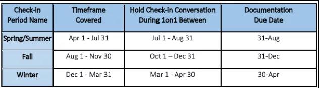相比于原有的年度绩效评估,伯克利推出的新版职员考核绩效计划更加重视管理者与职员之间的沟通,如下图所示,管理者和职员每年会在三个时间段开展一对一沟通,在沟通的过程中,管理者和职员可以就当前已达成的成就和预期的结果进行审查,并对后续的计划和目标作出相应的调整。