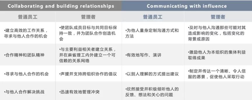上图为麻省理工的职员胜任力指标,主要包括: