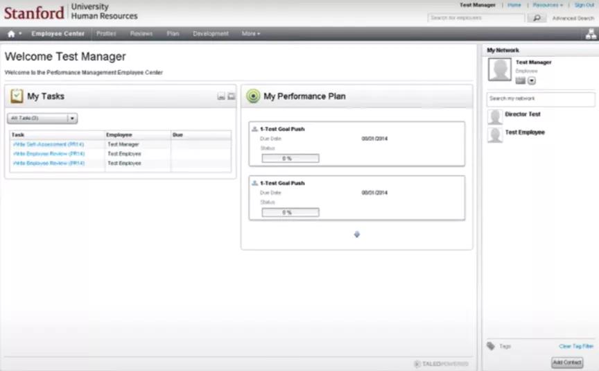 斯坦福的职员和管理者通过使用Taleo Perform平台进行内部绩效管理。