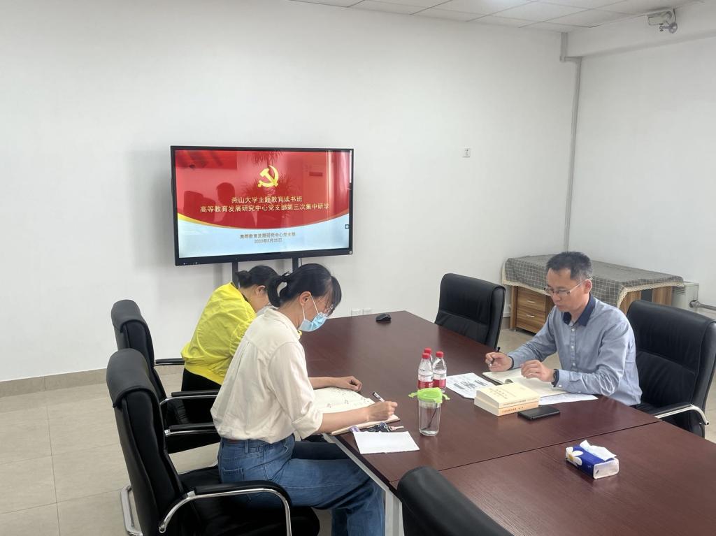 5月25日,按照机关党委部署,高等教育发展研究中心党支部组织开展了学习贯彻习近平新时代中国特色社会主义思想主题教育读书班第三次集中研学活动。会议由党支部书记王培龙主持。
